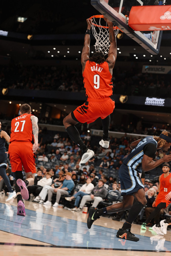 格兰特同样非常给力,出战36分钟,19投11中,其中三分球8投3中,罚球9投5中,得到30分9篮板4助攻1抢断。克林根今天被驱逐,罗伯特-威廉姆斯表现出色,替补出战23分钟,13投9中,其中三分球1投0中,罚球2投2中,得到20分11篮板3封盖,20分创个人赛季新高。